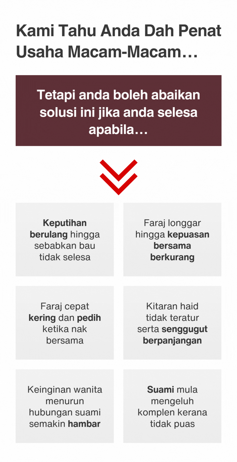 Sesuai untuk wanita berumur 35 tahun ke atas yang mengalami masalah seperti: